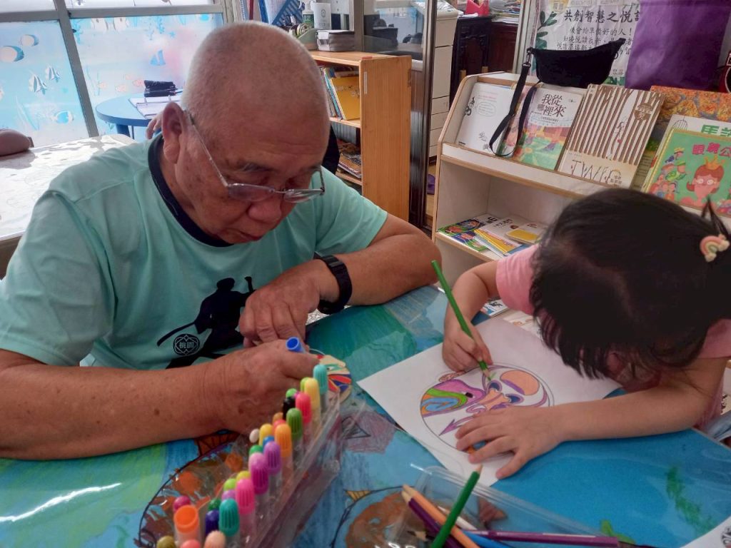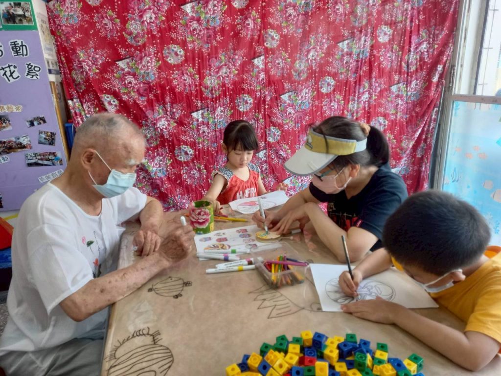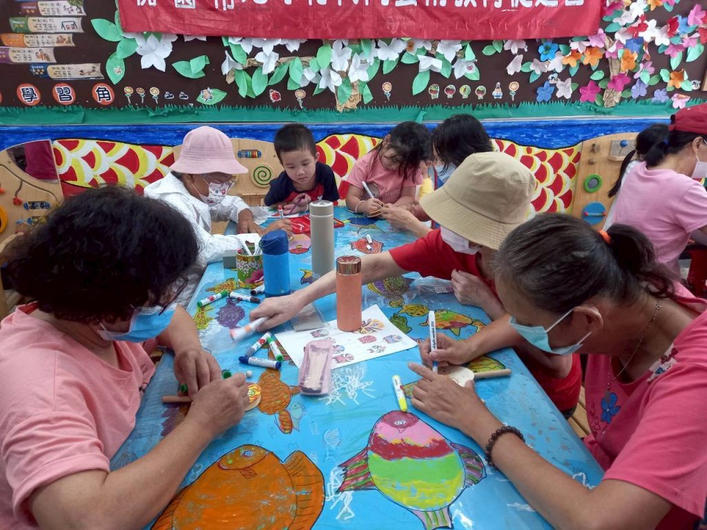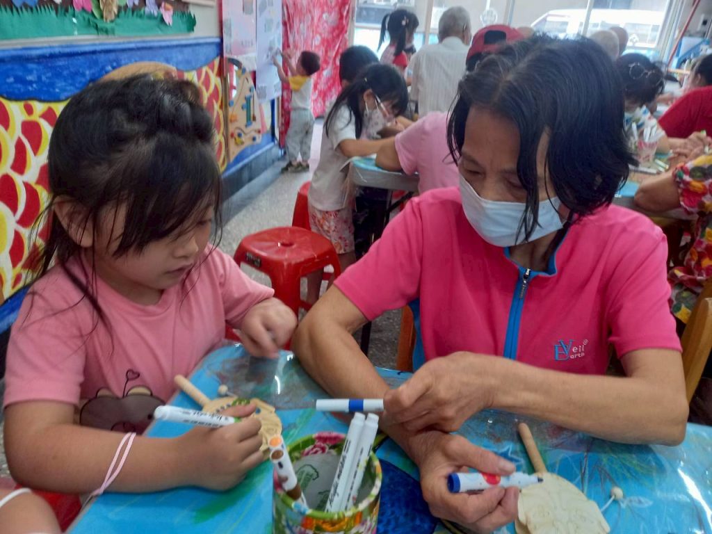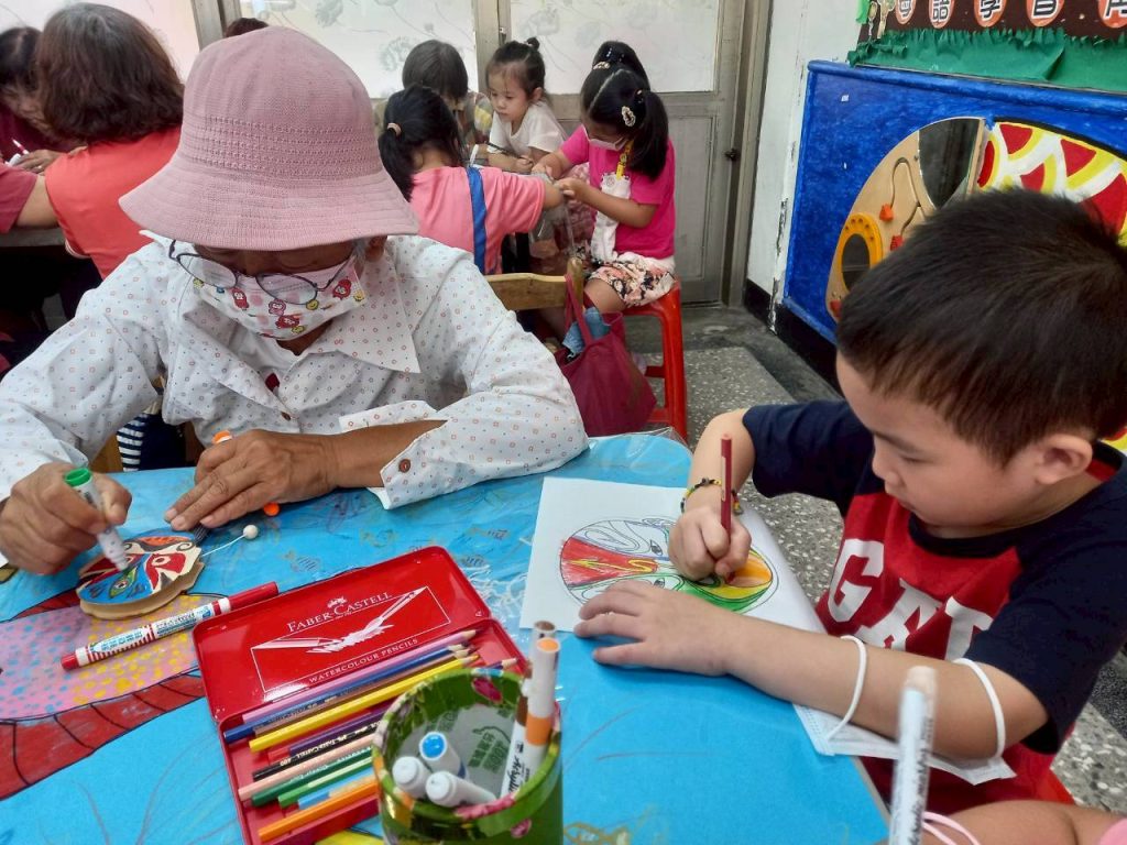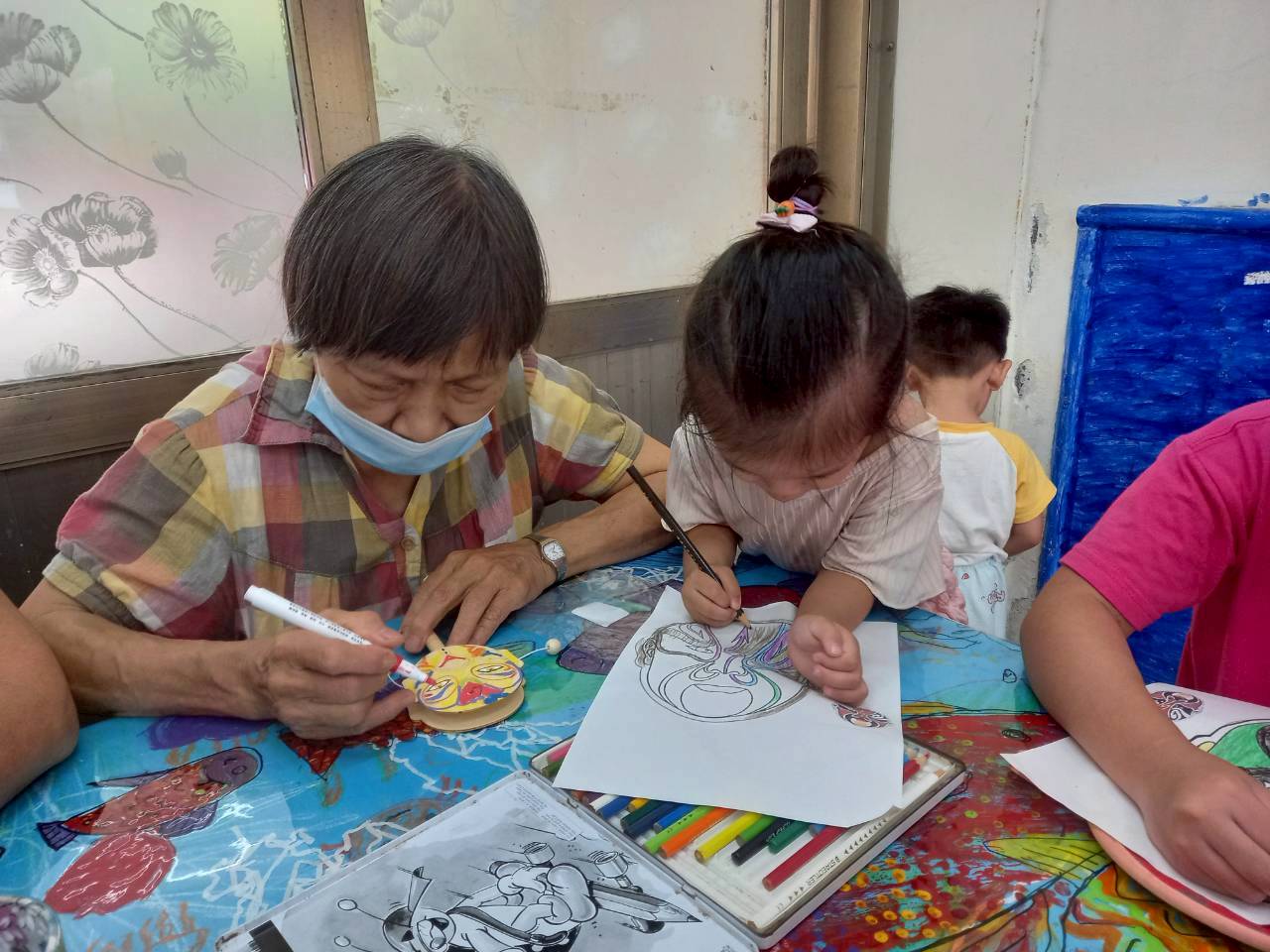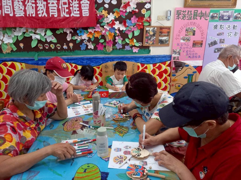 👵 長輩們動手製作波浪鼓,小心翼翼地黏合鼓面、繫上繩結,為臉譜著色,專注的神情讓人讚嘆。