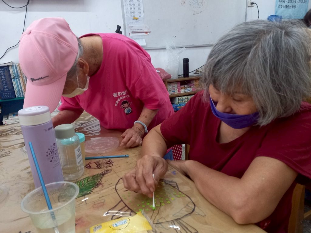 :發想圖案、運用顏色的過程培養專注力與創意,同時在與長輩的互動中學習合作與耐心。