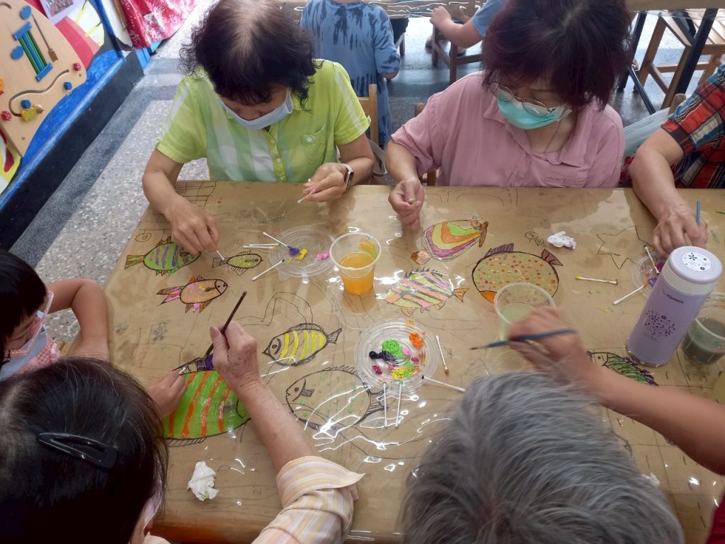 彩色魚缸就像長輩與孩子的共同生活空間,每一條魚都是彼此的陪伴與守護。這堂課不僅為桌子添上一層彩色的保護,也為大家的心靈添了一個共享的彩色魚缸。