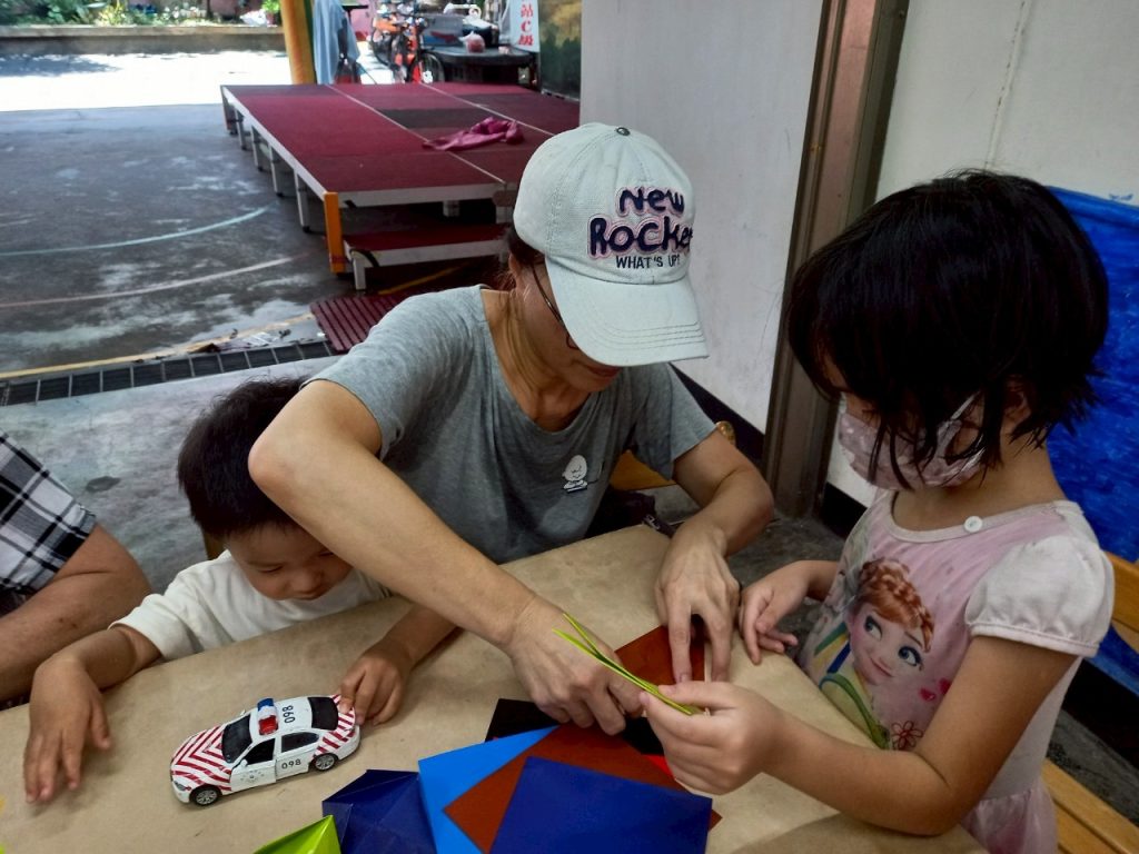 製作過程中,偶爾有人卡關 🤔,長輩們會互相討論,孩子們則常常靈機一動,比大人們還快找到解法!而這次因為正值暑假,還有一些「畢業回娘家」的哥哥們加入,腦筋動得特別快,穿梭在教室裡幫忙,成了小老師 👦👩🏫,協助弟弟妹妹與阿公阿嬤,讓大家都能快速上手。