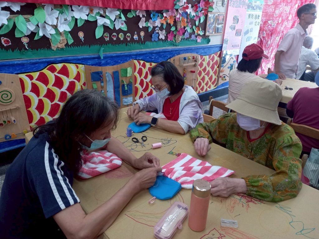 教室裡的氛圍很專注,長輩們一針一線縫得仔細,用心將布料變成溫暖的小作品。這個過程不僅訓練了手指的靈活度手眼協調力,還能帶來高度的專注力鍛鍊。而最棒的是,課程結束時,每個人都能把自己親手完成的擦手巾帶回家——既實用又充滿成就感!